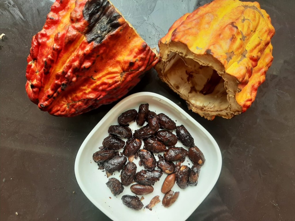 He chopped it in half. Inside was what looked like giant, brown corn on the cob, covered in slimy white mesh. Into the air fryer it went, and what emerged an hour later was some of the best chocolate I’ve ever tasted. In fact, it’s completely ruined store-bought chocolate.